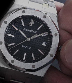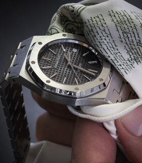 搭配金屬錶帶的愛彼腕錶均適合於淋浴沖水,不影響腕錶的性能。
