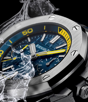 搭配金屬錶帶的愛彼腕錶均適合於淋浴沖水,不影響腕錶的性能。